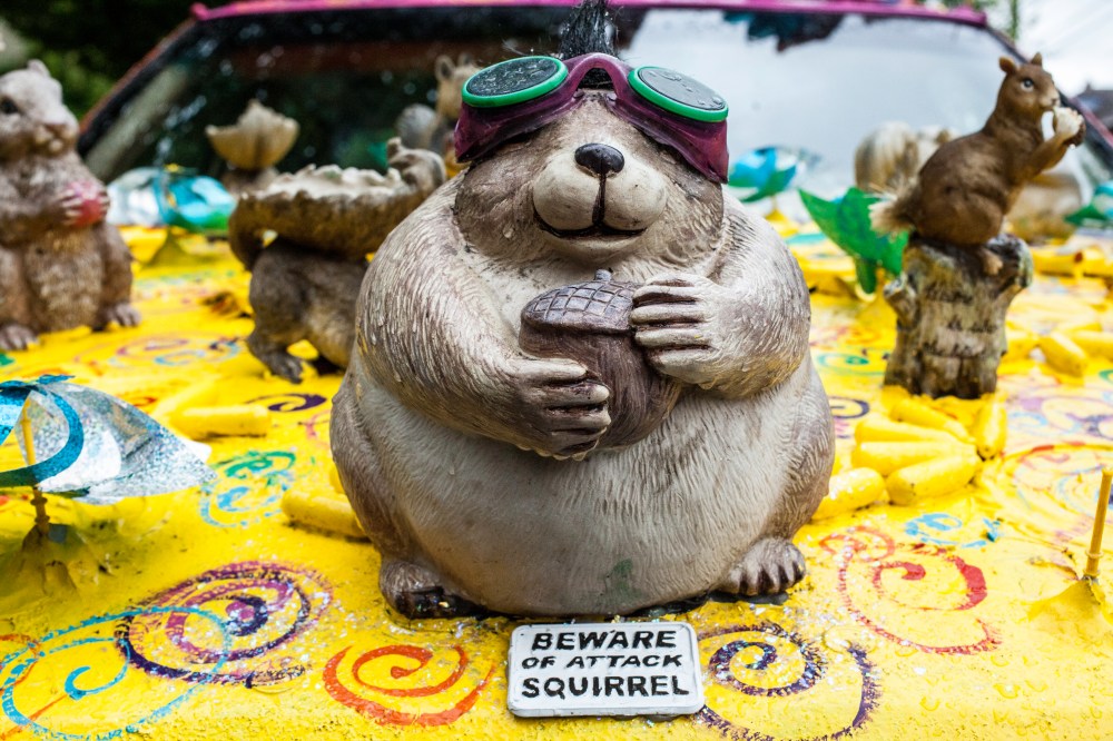 Unfortunately, I did not make it to the Fremont Solstice Parade this year…however, I was lucky enough to have a neighbor attending the fair in her squirrel covered vehicle, causing our street to be adorned with eccentric art cars for the weekend.