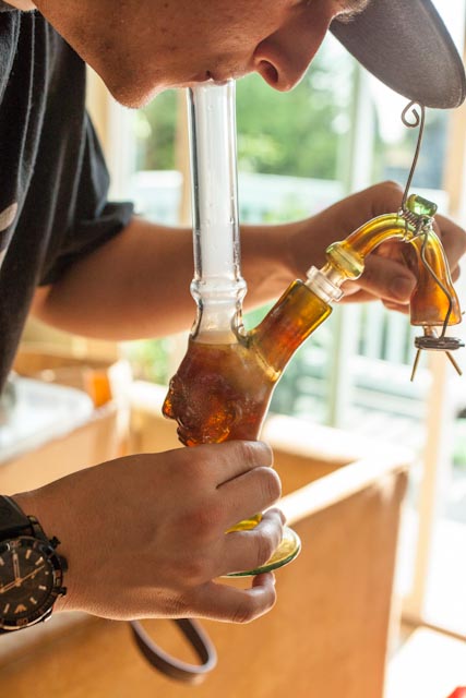 Posted on July 13, 2012 by Allie Beckett Custom made Voorhees oil rig with Heady Ti skillet …and the lucky new owner 🙂 Share this: Click to share on X (Opens in new window) X Click to share on Facebook (Opens in new window) Facebook Like Loading... Related