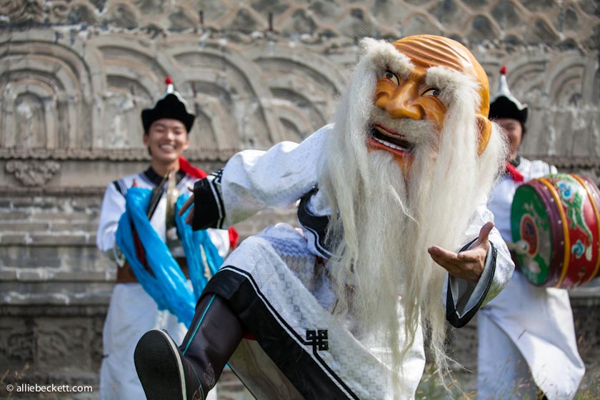 The ‘Old White Man’, known in Mongolia as Tsagaan uvgon, is the Lord of Earth, heaven, and livestock.The dancer behind the Tshoijoo mask Tshoijoo is the King of the dead, the underworld and hell Tshoijoo distinguishes between good and bad – he is responsible for sending people to paradise or hell